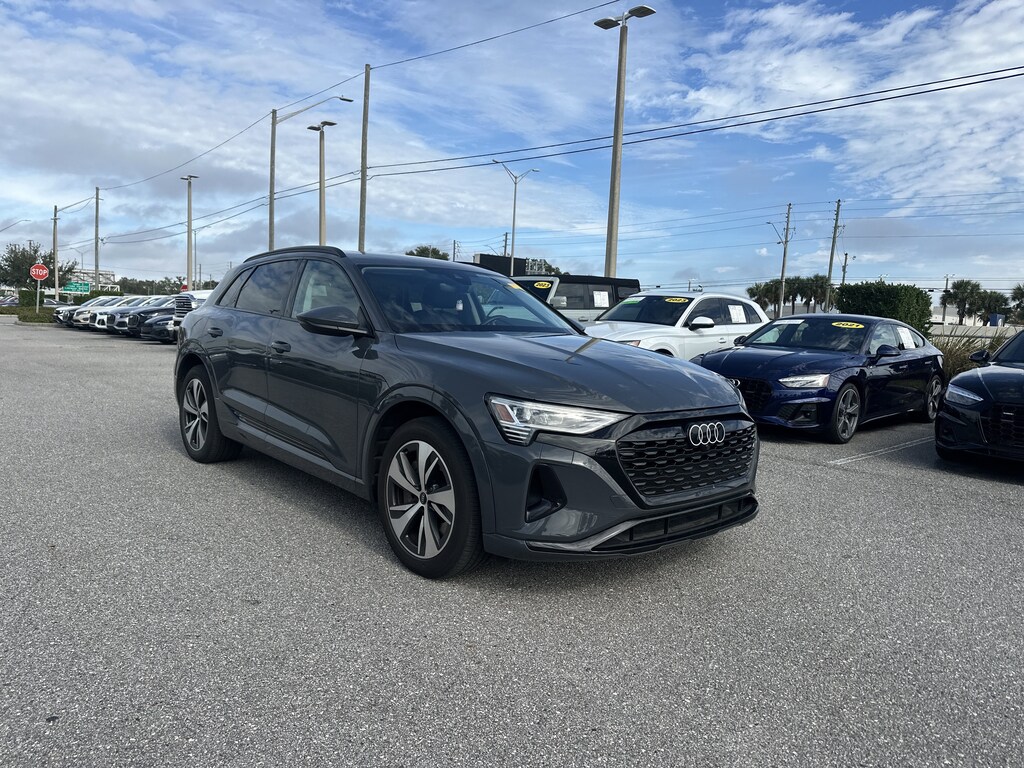 This 2024 Audi Q8 e-tron quattro combines fully electric driving with Audis signature luxury, technology, and all-weather capability. Finished in Magnet Gray with a Black interior, this Q8 e-tron is Audi Certified and offers an EPA-estimated 285-mile range with fast-charging capability up to 170 kW.