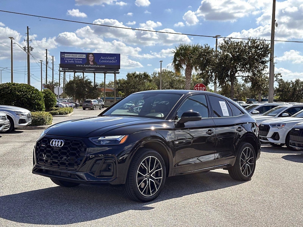 Dynamic performance meets refined design in this Audi Certified 2024 SQ5 Sportback Premium Plus, finished in stunning Mythos Black Metallic with the Black Optic Package and Illuminated Front Rings. With its sleek coupe-like profile and legendary quattro all-wheel drive, the SQ5 Sportback delivers exhilarating power from its 3.0-liter turbocharged V6 engine paired to an 8-speed Tiptronic transmission.
