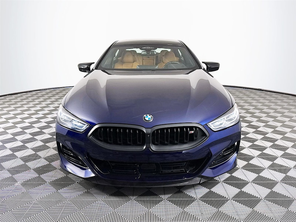 2025 BMW 8 Series M850i xDrive Gran Coupe is for sale at Crown INEOS. Absolutely beautiful color combo. Tanzanite Blue II Metallic M850i xDrive Gran Coupe 16 Speakers, 4-Wheel Disc Brakes, ABS brakes, Active Blind Spot Detection, Active Driving Assistant, Active Driving Assistant Pro, Active Park Distance Control, Adaptive suspension, Air Conditioning, Alloy wheels, AM/FM radio: SiriusXM, Apple CarPlay & Android Auto Compatibility, Auto High-beam Headlights, Auto tilt-away steering wheel, Auto-dimming door mirrors, Auto-dimming Rear-View mirror, Automatic temperature control, BMW Assist eCall, BMW TeleServices, Brake assist, Bumpers: body-color, Connected Package Pro, ConnectedDrive Services, Delay-off headlights, Driver door bin, Driver vanity mirror, Driving Assistance Package, Driving Assistance Professional Package, Dual front impact airbags, Dual front side impact airbags, Electronic Stability Control, Emergency communication system: BMW Assist eCall, Enhanced USB & Bluetooth, Extended Merino Leather Upholstery, Extended Shadowline Trim, Extended Traffic Jam Assistant, Exterior Parking Camera Rear, Four wheel independent suspension, Front anti-roll bar, Front Bucket Seats, Front Center Armrest, Front dual zone A/C, Front reading lights, Front Ventilated Seats, Fully automatic headlights, Garage door transmitter, harman/kardon Surround Sound System, harman/kardon® Speakers, Heads-Up Display, Heated door mirrors, Heated front seats, Heated Front Seats w/Armrests & Steering Wheel, Heated steering wheel, Illuminated entry, Leather Shift Knob, Leather steering wheel, Live Cockpit Pro w/Navi, Low tire pressure warning, M Performance Package, M Shadowline Lights, M Sport Brakes w/Black Calipers, M Sport Professional Package, Memory seat, Multi-Functional Seats, Navigation System, Occupant sensing airbag, Outside temperature display, Overhead airbag, Panic alarm, Parking Assistant Plus, Passenger door bin, Passenger vanity mirror, Power door mirrors, Power driver seat, Power moonroof, Power passenger seat, Power steering, Power windows, Radio data system, Radio: AM/FM Audio System, Rain sensing wipers, Rear air conditioning, Rear anti-roll bar, Rear dual zone A/C, Rear Window Blind, Rear window defroster, Rear-View Camera, Remote keyless entry, Security system, SiriusXM Satellite Radio w/1 Year Subscription, Speed control, Speed-sensing steering, Speed-Sensitive Wipers, Split folding rear seat, Sport steering wheel, Steering wheel memory, Steering wheel mounted audio controls, Surround View w/3D View, Tachometer, Telescoping steering wheel, Tilt steering wheel, Traction control, Trip computer, Turn signal indicator mirrors, Variably intermittent wipers, Ventilated front seats, Wheels: 20" x 8" Fr & 20" x 9" Rr M Dual-Spoke, Wheels: 20" x 8" Fr & 20" x 9" Rr M Dual-Spoke (1E5), WiFi Hotspot, Wireless Charging.