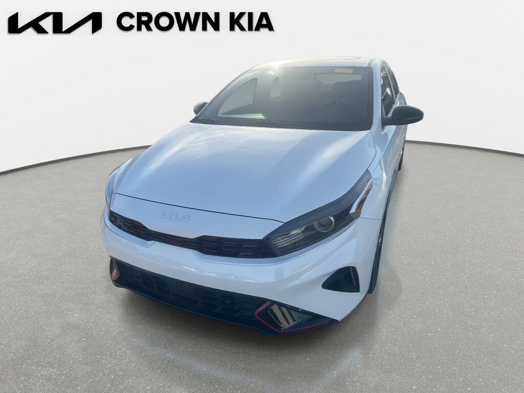 This 2023 Kia Forte GT-Line in Snow White Pearl features: 10-Way Power Driver's Seat, 17" x 7.0J Alloy Wheels, 4-Wheel Disc Brakes, 6 Speakers, ABS brakes, Air Conditioning, Alloy wheels, AM/FM radio: SiriusXM, Apple CarPlay & Android Auto, Auto High-beam Headlights, Automatic temperature control, Brake assist, Bumpers: body-color, Carpet Floor Mats, Cloth & SynTex Seat Trim, Delay-off headlights, Driver door bin, Driver vanity mirror, Dual front impact airbags, Dual front side impact airbags, Electronic Parking Brake (EPB), Electronic Stability Control, Emergency communication system, Exterior Parking Camera Rear, Forward Collision Avoidance-Assist - Cyclist, Front anti-roll bar, Front Bucket Seats, Front Center Armrest, Front dual zone A/C, Front fog lights, Front reading lights, Front wheel independent suspension, Fully automatic headlights, GT-Line Premium Package, GT-Line Sport Premium Package, Heated & Ventilated Front Seats, Heated door mirrors, Illuminated entry, Leather Shift Knob, Leather steering wheel, LED Interior Lighting, Low tire pressure warning, Navigation System, Navigation-Based Smart Cruise Control (NSCC), Occupant sensing airbag, Outside temperature display, Overhead airbag, Overhead console, Panic alarm, Passenger door bin, Passenger vanity mirror, Power door mirrors, Power steering, Power Sunroof, Power windows, Radio data system, Radio: 10.25" Display Audio, Radio: harman kardon Premium Audio, Rear AC Vent, Rear seat center armrest, Rear USB Charger, Rear window defroster, Remote keyless entry, Security system, Smart Cruise Control w/Stop & Go, Speed control, Split folding rear seat, Spoiler, Sport steering wheel, Steering wheel mounted audio controls, SynTex Seat Trim, Tachometer, Telescoping steering wheel, Tilt steering wheel, Traction control, Trip computer, Turn signal indicator mirrors, Variably intermittent wipers, Wireless Charging. Clean CARFAX. 28/39 City/Highway MPG