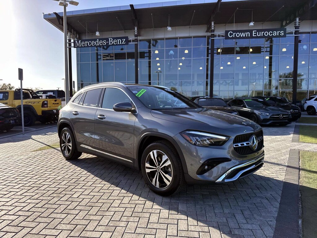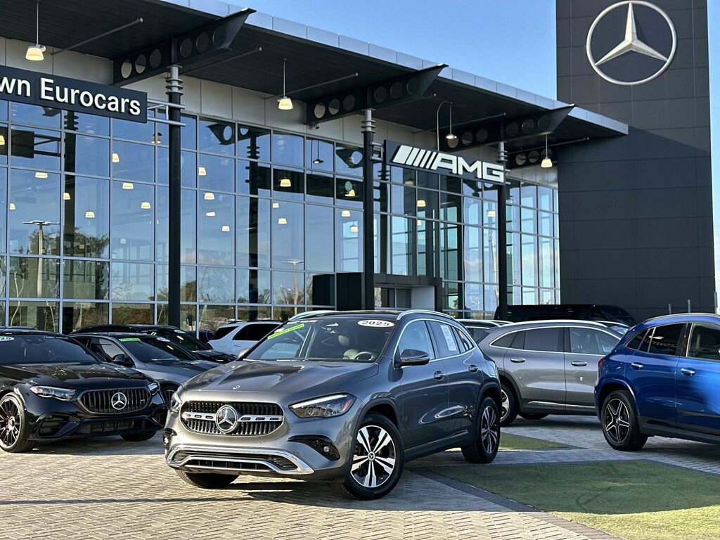 2025 Mercedes-Benz GLA 250 Mercedes-Benz Certified, 4-Wheel Disc Brakes, 6 Speakers, ABS brakes, Air Conditioning, Alloy wheels, AM/FM radio: SiriusXM, Apple CarPlay®/Android Auto®, Auto High-beam Headlights, Auto-dimming door mirrors, Auto-dimming Rear-View mirror, Automatic temperature control, Brake assist, Bumpers: body-color, Child-Seat-Sensing Airbag, Delay-off headlights, Driver door bin, Driver vanity mirror, Dual front impact airbags, Dual front side impact airbags, Electronic Stability Control, Emergency communication system: eCall Emergency System and Active Emergency Stop Assist, Exterior Parking Camera Rear, Four wheel independent suspension, Front anti-roll bar, Front Bucket Seats, Front Center Armrest, Front dual zone A/C, Front fog lights, Front Power Comfort Seats, Front reading lights, Fully automatic headlights, Garage door transmitter, Heated door mirrors, Illuminated entry, Knee airbag, Leather steering wheel, Low tire pressure warning, MB-Tex Upholstery, Memory seat, Occupant sensing airbag, Outside temperature display, Overhead airbag, Overhead console, Panic alarm, Passenger door bin, Passenger vanity mirror, Power door mirrors, Power driver seat, Power Liftgate, Power passenger seat, Power steering, Power windows, Premium audio system: MBUX, Radio data system, Radio: Mercedes-Benz User Experience (MBUX), Rain sensing wipers, Rear anti-roll bar, Rear fog lights, Rear reading lights, Rear window defroster, Rear window wiper, Remote keyless entry, Security system, Speed control, Speed-sensing steering, Split folding rear seat, Spoiler, Steering wheel mounted audio controls, Tachometer, TBD Axle Ratio, Telescoping steering wheel, Tilt steering wheel, Traction control, Trip computer, Turn signal indicator mirrors, Variably intermittent wipers, Wheels: 18" Twin 5-Spoke. Gray Metallic