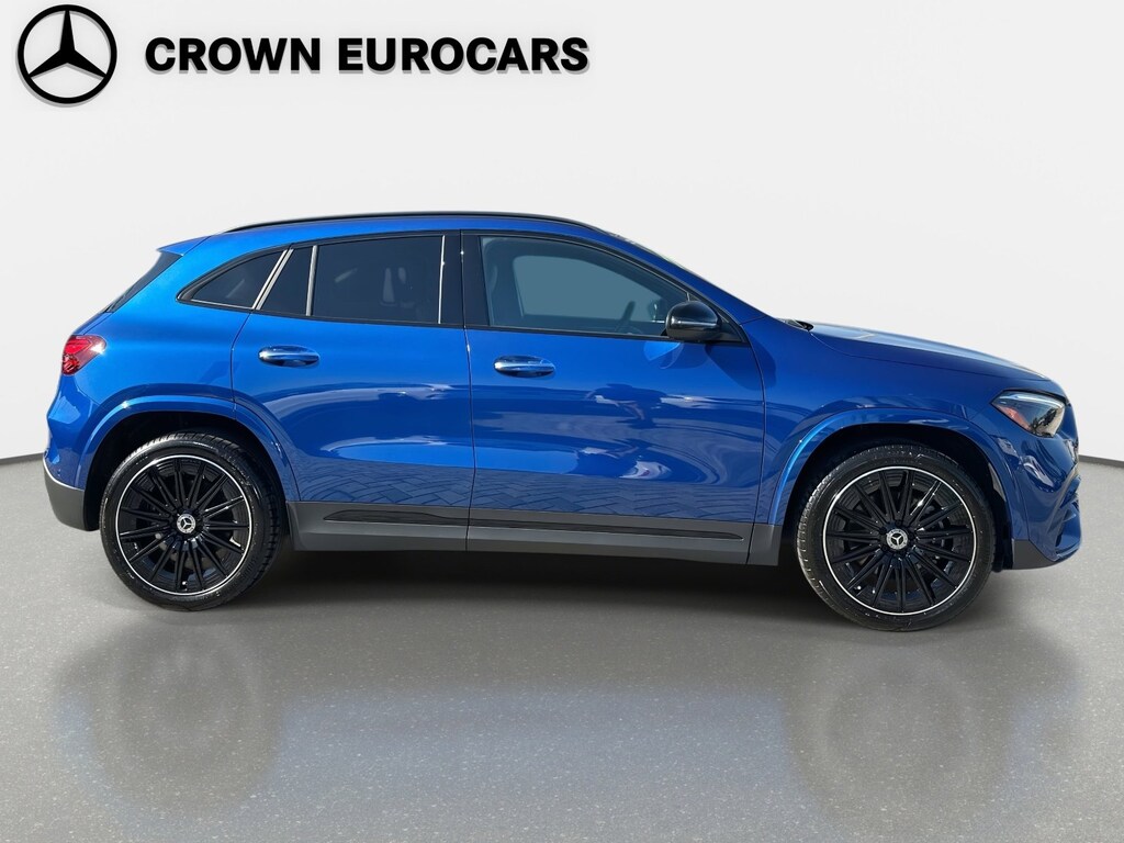 2025 Mercedes-Benz GLA 250 Mercedes-Benz Certified, 4-Wheel Disc Brakes, 6 Speakers, ABS brakes, Air Conditioning, Alloy wheels, AM/FM radio: SiriusXM, Apple CarPlay®/Android Auto®, Auto High-beam Headlights, Auto-dimming door mirrors, Auto-dimming Rear-View mirror, Automatic temperature control, Brake assist, Bumpers: body-color, Child-Seat-Sensing Airbag, Delay-off headlights, Driver door bin, Driver vanity mirror, Dual front impact airbags, Dual front side impact airbags, Electronic Stability Control, Emergency communication system: eCall Emergency System and Active Emergency Stop Assist, Exterior Parking Camera Rear, Four wheel independent suspension, Front anti-roll bar, Front Bucket Seats, Front Center Armrest, Front dual zone A/C, Front fog lights, Front Power Comfort Seats, Front reading lights, Fully automatic headlights, Garage door transmitter, Heated door mirrors, Illuminated entry, Knee airbag, Leather steering wheel, Low tire pressure warning, MB-Tex Upholstery, Memory seat, Occupant sensing airbag, Outside temperature display, Overhead airbag, Overhead console, Panic alarm, Passenger door bin, Passenger vanity mirror, Power door mirrors, Power driver seat, Power Liftgate, Power passenger seat, Power steering, Power windows, Premium audio system: MBUX, Radio data system, Radio: Mercedes-Benz User Experience (MBUX), Rain sensing wipers, Rear anti-roll bar, Rear fog lights, Rear reading lights, Rear window defroster, Rear window wiper, Remote keyless entry, Security system, Speed control, Speed-sensing steering, Split folding rear seat, Spoiler, Steering wheel mounted audio controls, Tachometer, TBD Axle Ratio, Telescoping steering wheel, Tilt steering wheel, Traction control, Trip computer, Turn signal indicator mirrors, Variably intermittent wipers, Wheels: 18" Twin 5-Spoke. Blue Metallic