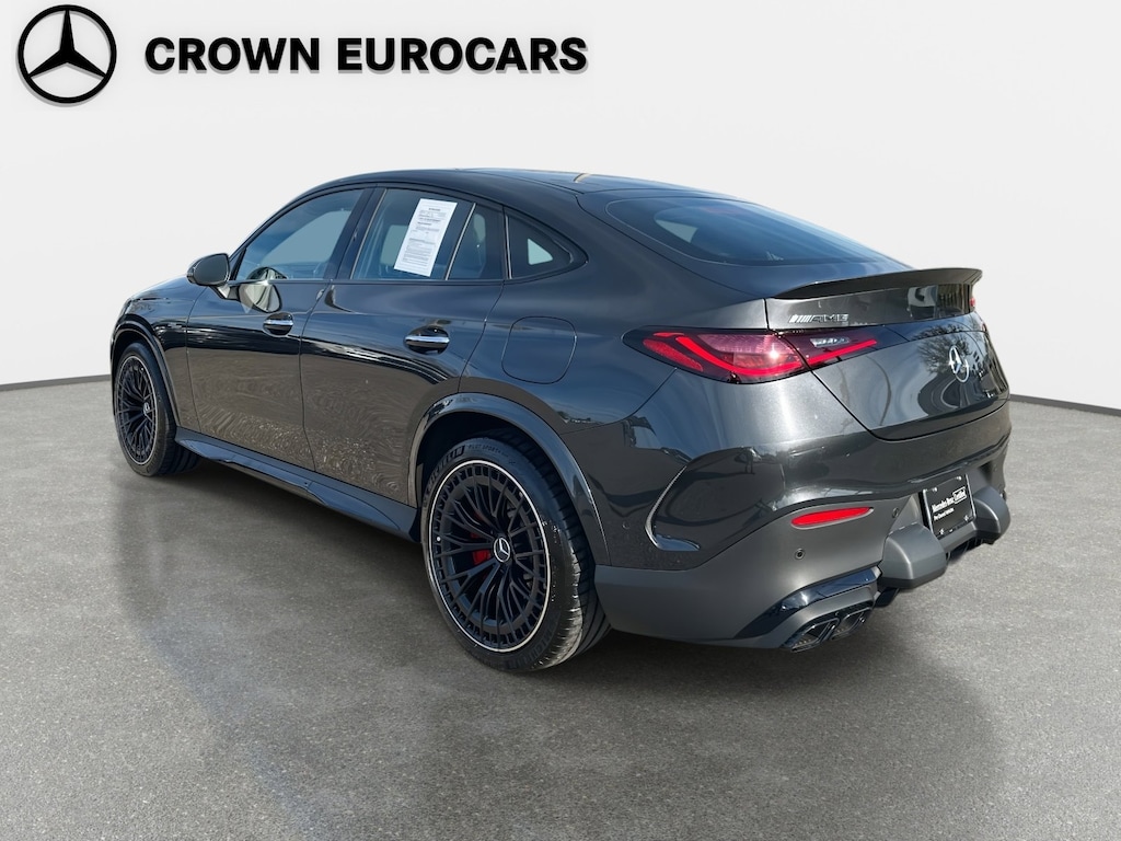 2025 Mercedes-Benz GLC 63 AMG® S E Performance Coupe 4MATIC® Mercedes-Benz Certified, 11.9" Center Touchscreen Display, 15 Speakers, 3 USB-C Ports, 4-Wheel Disc Brakes, ABS brakes, Adaptive suspension, Air Conditioning, Alloy wheels, AM/FM radio: SiriusXM, Apple CarPlay®/Android Auto®, Audio memory, Auto High-beam Headlights, Auto tilt-away steering wheel, Auto-dimming door mirrors, Auto-dimming Rear-View mirror, Auto-leveling suspension, Automatic temperature control, Bluetooth® Connectivity For Mobile Device, Brake assist, Bumpers: body-color, Burmester® 3D Surround Sound System, Child-Seat-Sensing Airbag, Compass, Delay-off headlights, Driver door bin, Driver vanity mirror, Dual front impact airbags, Dual front side impact airbags, Electronic Stability Control, Emergency communication system: eCall Emergency System, Exterior Parking Camera Rear, Four wheel independent suspension, Front anti-roll bar, Front Bucket Seats, Front Center Armrest, Front dual zone A/C, Front reading lights, Fully automatic headlights, Garage door transmitter: HomeLink, Genuine wood dashboard insert, Head restraints memory, Heated door mirrors, Heated front seats, Heated steering wheel, Illuminated entry, Knee airbag, Leather steering wheel, Low tire pressure warning, MB-Tex/Microfiber Upholstery, MBUX Intelligent Vehicle Assistant ("Hey Mercedes"), Memory seat, Navigation System, Occupant sensing airbag, Outside temperature display, Overhead airbag, Overhead console, Panic alarm, Passenger door bin, Passenger vanity mirror, Power adjustable front head restraints, Power door mirrors, Power driver seat, Power Heated Front Seats, Power Liftgate, Power moonroof: Panoramic, Power passenger seat, Power steering, Power windows, Premium audio system: MBUX, Radio data system, Radio: MBUX Multimedia System, Rain sensing wipers, Rear anti-roll bar, Rear fog lights, Rear reading lights, Rear seat center armrest, Rear window defroster, Remote keyless entry, Security system, SiriusXM Satellite Radio, Speed control, Speed-sensing steering, Split folding rear seat, Sport steering wheel, Steering wheel memory, Steering wheel mounted audio controls, Tachometer, Telescoping steering wheel, Tilt steering wheel, Traction control, Trip computer, Turn signal indicator mirrors, Variably intermittent wipers, Wheels: 9.5J x 20" Fr & 10.0J x 20" Rr 10-Spoke, Wireless Android Auto®, Wireless Apple CarPlay®. Gray Metallic