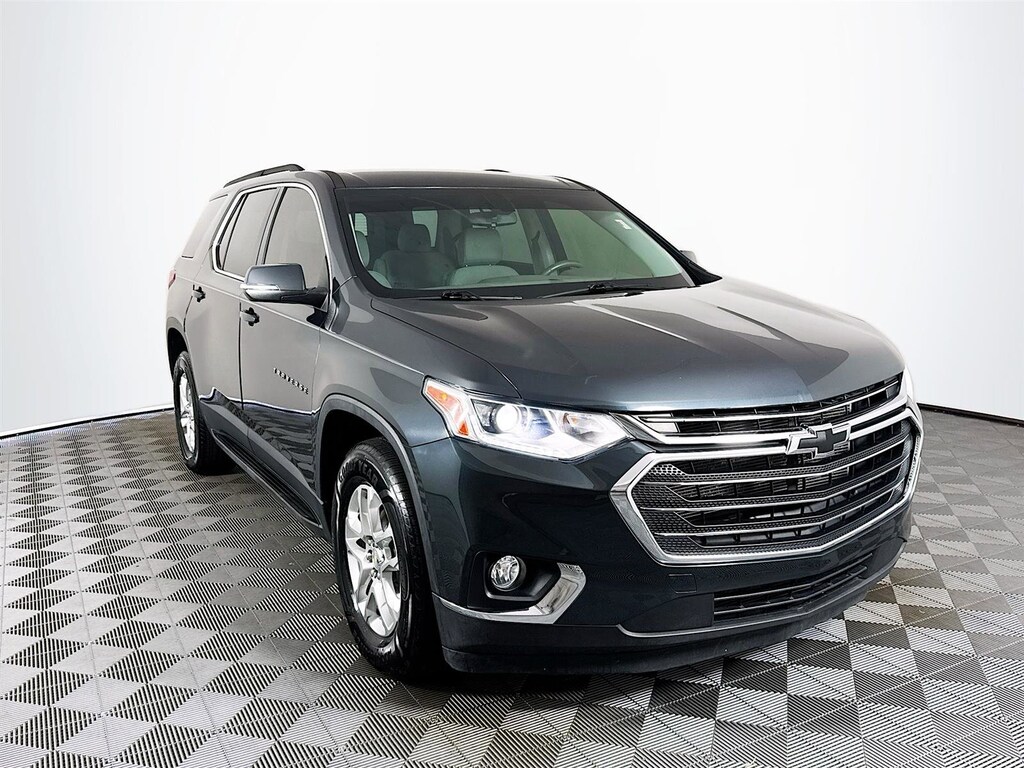 This 2021 Chevrolet Traverse LT in Graphite Metallic features: **CROWN CONFIDENCE PLAN USED CAR GUARANTEE Certified, 3.49 Axle Ratio, 3rd row seats: split-bench, 4-Wheel Disc Brakes, 4.2" Multi-Color Enhanced Driver Instrument Display, 6 Speakers, 7-Passenger Seating (2-2-3 Seating Configuration), ABS brakes, Air Conditioning, Alloy wheels, AM/FM radio: SiriusXM, Apple CarPlay/Android Auto, Automatic temperature control, Black Molded Assist Steps (LPO), Brake assist, Bumpers: body-color, Compass, Convenience & Driver Confidence Package, Delay-off headlights, Driver door bin, Driver vanity mirror, Dual front impact airbags, Dual front side impact airbags, Electronic Stability Control, Emergency communication system: OnStar and Chevrolet connected services capable, Four wheel independent suspension, Front & Rear Black Bowtie Emblems (LPO), Front anti-roll bar, Front Bucket Seats, Front Center Armrest, Front dual zone A/C, Front fog lights, Front reading lights, Fully automatic headlights, Heated door mirrors, Heated Driver & Front Passenger Seats, High-Intensity Discharge Headlights, Illuminated entry, Lane Change Alert w/Side Blind Zone Alert, Leather steering wheel, Low tire pressure warning, Occupant sensing airbag, Outside temperature display, Overhead airbag, Overhead console, Panic alarm, Passenger door bin, Passenger vanity mirror, Power door mirrors, Power driver seat, Power steering, Power windows, Preferred Equipment Group 1LT, Premium Cloth Seat Trim, Radio data system, Radio: Chevrolet Infotainment 3 Plus System, Radio: Chevrolet Infotainment System AM/FM Stereo, Rear air conditioning, Rear anti-roll bar, Rear Cross Traffic Alert, Rear Park Assist w/Audible Warning, Rear Power Liftgate, Rear reading lights, Rear window defroster, Rear window wiper, Remote keyless entry, Remote Start, Roof rack: rails only, Security system, SiriusXM Radio, SiriusXM w/360L, Speed control, Speed-sensing steering, Spoiler, Steering wheel mounted audio controls, Tachometer, Telescoping steering wheel, Tilt steering wheel, Traction control, Trip computer, Turn signal indicator mirrors, Universal Home Remote, Variably intermittent wipers, Voltmeter, Wheels: 18" Bright Silver Painted Aluminum. Certified. Clean CARFAX. CARFAX One-Owner. Odometer is 16383 miles below market average! 18/27 City/Highway MPG
