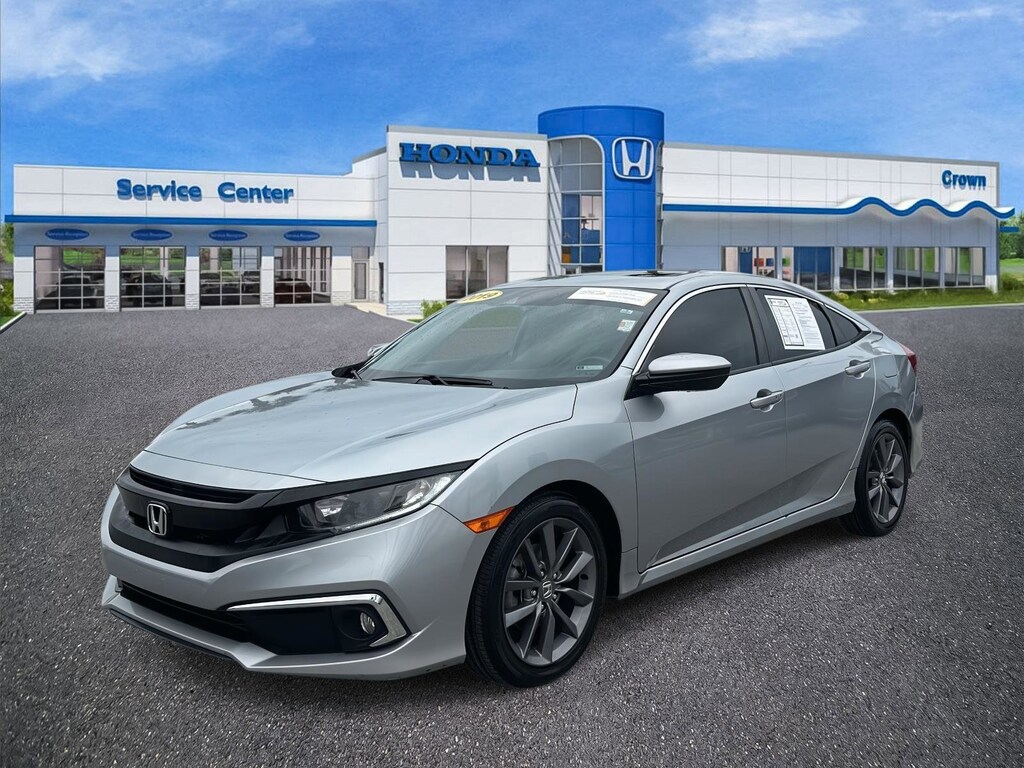 ALL SERVICES PERFORMED ON THIS VEHICLE ARE INCLUDED IN OUR ONLINE PRICE!! CROWN HONDA DOES NOT CHARGE RECONDITIONING OR CERTIFICATION FEES!! This 2019 Honda Civic EX-L in Lunar Silver Metallic features: Certified. 17" Alloy Wheels, 8 Speakers, AM/FM radio: SiriusXM, Apple CarPlay/Android Auto, Auto-dimming Rear-View mirror, Automatic temperature control, Exterior Parking Camera Rear, Forward collision: Collision Mitigation Braking System (CMBS) + FCW mitigation, Front dual zone A/C, Front fog lights, Fully automatic headlights, Heated front seats, Lane departure: Lane Keeping Assist System (LKAS) active, Leather Seat Trim, Power driver seat, Power moonroof, Remote keyless entry, Steering wheel mounted audio controls.