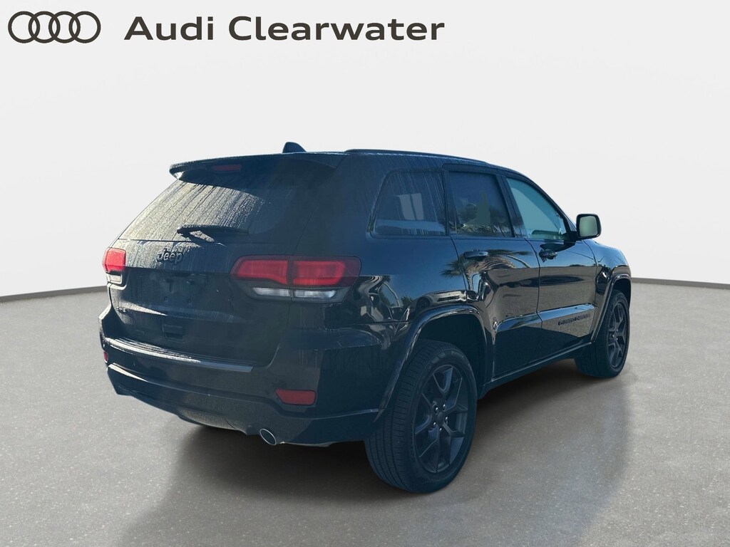 Adaptive Cruise Control w/Stop, Advanced Brake Assist, Berber Floor Mats w/80th Anniversary Tag, Black Roof Molding, Body Color Claddings, Body Color Door Handles, Body Color Shark Fin Antenna, Dark Day Light Opening Moldings, Dark Headlamp Bezel Finish, Dark Lens Taillamps, Dual-Pane Panoramic Sunroof, Front Accent/Body Color Fascia, Full Speed FWD Collision Warn Plus, Granite Crystal Exterior Accents, Granite Crystal Exterior Badging, Granite Crystal Exterior Mirror Caps, Granite Crystal/Black Grille, Jeep 80th Anniversary Badges, Jeep 80th Anniversary Edition, Lane Departure Warning Plus, Leather Trimmed Bucket Seats (JY), LT. Tungsten Interior Accent Stitching, Parallel & Perp Park Assist w/Stop, ParkView Rear Back-Up Camera, Piano Black/Anod. Gunmetal Interior Accents, Power Liftgate, Quick Order Package 2BK 80th, Rain Sensitive Windshield Wipers, Rear Accent/Body Color Fascia, Wheels: 20" x 8.0" Granite Crystal Aluminum, 1-Year SiriusXM Guardian Trial, 230MM Rear Axle, 3.45 Rear Axle Ratio, 4-Wheel Disc Brakes, 4G LTE Wi-Fi Hot Spot, 506 Watt Amplifier, 6 Speakers, 8.4" Touchscreen Display, 80th Anniversary Luxury Group, ABS brakes, Active Noise Control System, Air Conditioning, Alloy wheels, AM/FM radio: SiriusXM, Anti-whiplash front head restraints, Apple CarPlay, Apple CarPlay/Android Auto, Audio memory, Auto-dimming door mirrors, Auto-dimming Rear-View mirror, Automatic temperature control, Brake assist, Bumpers: body-color, Cargo Compartment Cover, Compass, Delay-off headlights, Driver door bin, Driver vanity mirror, Dual front impact airbags, Dual front side impact airbags, Electronic Stability Control, Emergency communication system: SiriusXM Guardian, Four wheel independent suspension, Front anti-roll bar, Front Bucket Seats, Front Center Armrest w/Storage, Front dual zone A/C, Front fog lights, Front reading lights, Fully automatic headlights, Garage door transmitter, Google Android Auto, GPS Antenna Input, GPS Navigation, HD Radio, Heated door mirrors, Heated front seats, Heated Second Row Seats, Heated steering wheel, Illuminated entry, Integrated Voice Command w/Bluetooth, Knee airbag, Leather Shift Knob, Leather Trimmed Bucket Seats, Low tire pressure warning, Memory seat, Navigation System, Normal Duty Suspension, Occupant sensing airbag, Outside temperature display, Overhead airbag, Overhead console, Panic alarm, Passenger door bin, Passenger vanity mirror, Power door mirrors, Power driver seat, Power passenger seat, Power steering, Power Tilt/Telescope Steering Column, Power windows, Premium Alpine Speaker System, Radio data system, Radio: Uconnect 4C Nav w/8.4" Display, Rear anti-roll bar, Rear reading lights, Rear seat center armrest, Rear window defroster, Rear window wiper, Remote keyless entry, Roof rack: rails only, Security system, SiriusXM Satellite Radio, SiriusXM Traffic Plus, SiriusXM Travel Link, Speed control, Speed-sensing steering, Speed-Sensitive Wipers, Split folding rear seat, Spoiler, Steering wheel mounted audio controls, Tachometer, Telescoping steering wheel, Tilt steering wheel, Traction control, Trip computer, Turn signal indicator mirrors, Variably intermittent wipers, Ventilated Front Seats, Voltmeter, Wheels: 18" x 8.0" Tech Gray Diamond Cut, Adaptive Cruise Control w/Stop, Advanced Brake Assist, Berber Floor Mats w/80th Anniversary Tag, Black Roof Molding, Body Color Claddings, Body Color Door Handles, Body Color Shark Fin