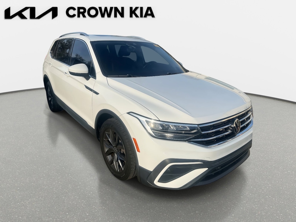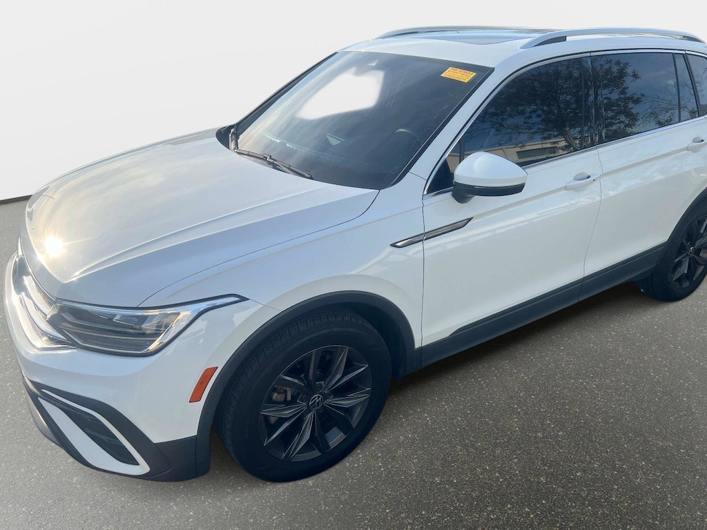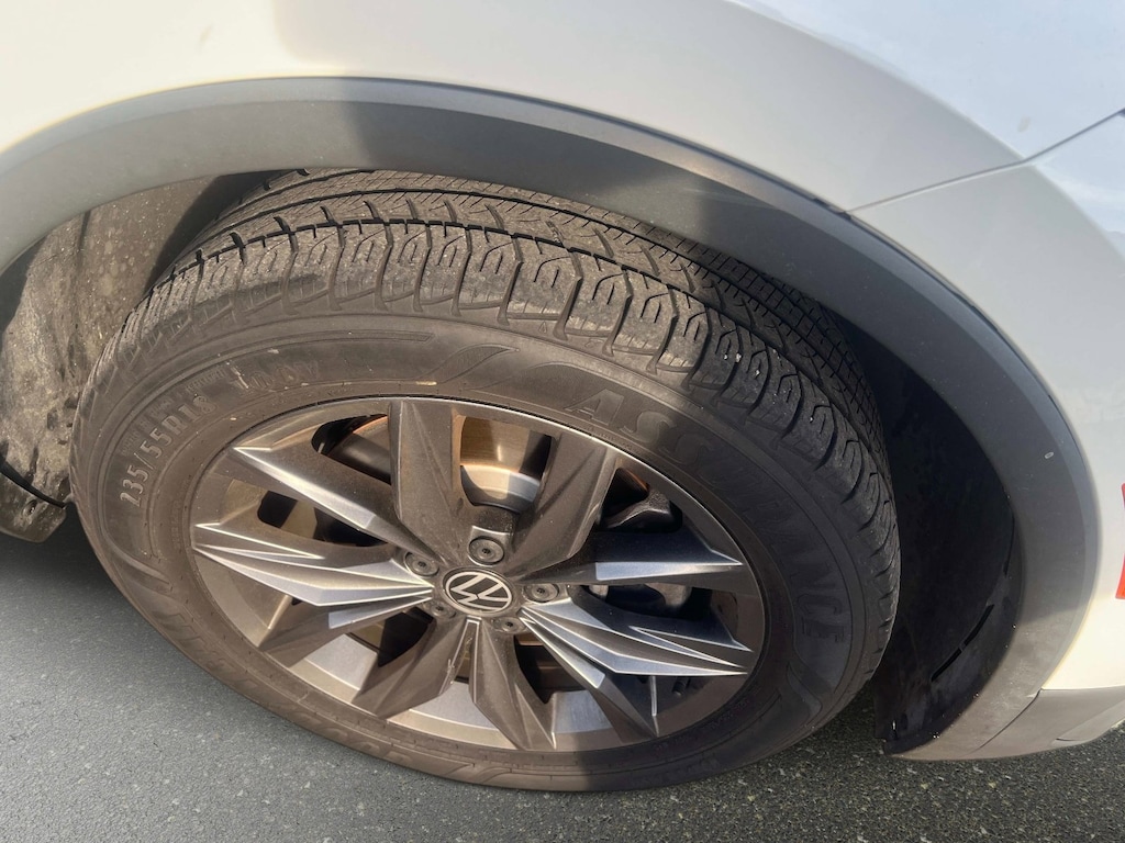 This 2022 Volkswagen Tiguan 2.0T SE in White features: 3.33 Axle Ratio, 3rd row seats: bench, 4-Wheel Disc Brakes, 4-Wheel Independent Suspension, 6 Speakers, ABS brakes, Air Conditioning, Alloy wheels, AM/FM radio: SiriusXM with 360L, Auto-dimming Rear-View mirror, Automatic temperature control, Brake assist, Bumpers: body-color, Compass, Delay-off headlights, Driver door bin, Driver vanity mirror, Dual front impact airbags, Dual front side impact airbags, Electronic Stability Control, Emergency communication system: Car-Net, Exterior Parking Camera Rear, Four wheel independent suspension, Front anti-roll bar, Front Bucket Seats, Front Center Armrest, Front dual zone A/C, Front reading lights, Fully automatic headlights, Heated door mirrors, Heated Front Comfort Seats, Heated front seats, Illuminated entry, Leather Shift Knob, Low tire pressure warning, Occupant sensing airbag, Outside temperature display, Overhead airbag, Overhead console, Panic alarm, Passenger door bin, Passenger vanity mirror, Perforated V-Tex Leatherette Seating Surfaces, Power door mirrors, Power driver seat, Power Liftgate, Power steering, Power windows, Radio data system, Radio: MIB3 Composition Media AM/FM/HD, Rain sensing wipers, Rear anti-roll bar, Rear reading lights, Rear seat center armrest, Rear window defroster, Rear window wiper, Remote keyless entry, Roof rack: rails only, Security system, Speed control, Speed-sensing steering, Split folding rear seat, Spoiler, Steering wheel mounted audio controls, Tachometer, Telescoping steering wheel, Tilt steering wheel, Traction control, Trip computer, Turn signal indicator mirrors, Variably intermittent wipers, Wheels: 18" Dark Graphite 10-Spoke Alloy. Clean CARFAX. 23/30 City/Highway MPG