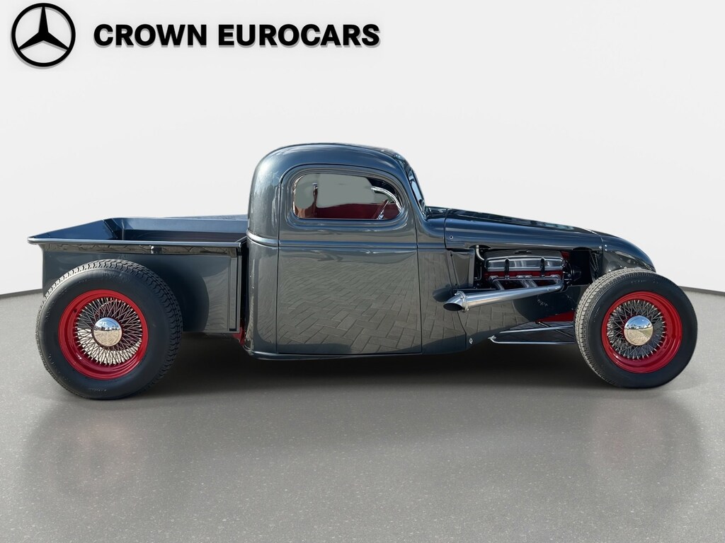 The project was the third of a trio of custom Chevy trucks Gansulass built, with this one planned specifically for its Detroit debut. The build reportedly began with only the 1946 cab and a handful of leftover parts. The body was transformed through a 4-inch chop, shaved driplines, a filled cowl vent, suicided doors, newly fabricated hinges and hardware, and extensive smoothing and reshaping that included constructing new panels by hand. The truck was then finished in Audi Daytona Gray Metallic with pearl and DuPont clear, complemented by DuPont Flame Red detailing. It rides on Dayton wire wheels mounted with Excelsior Stahl Sport radials and is supported by a custom chassis designed for an ultra-low stance.